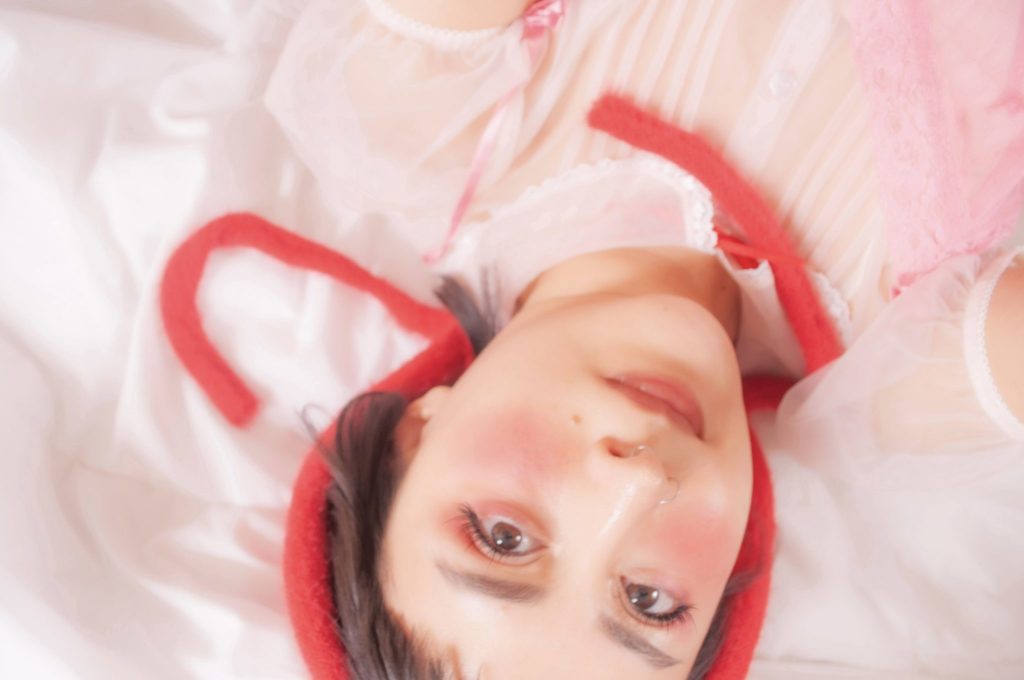 巨大なふわふわの雲に乗りながら、イチゴ畑の上をボートで進む。 下を向いて写真を撮っている間、私はお気に入りの服を着ている。どれもパステルや赤の色合いで、フリルやレースやリボンがついている。