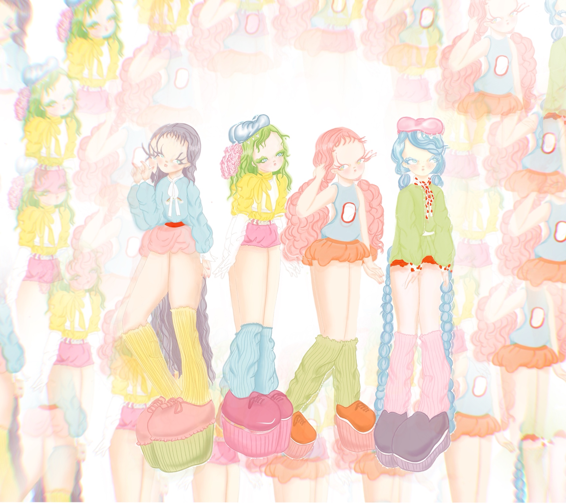 カラーパレットは、ネイビー、淡く鮮やかなピンク、オレンジ、イエロー、グリーンとのコントラストが美しいパステルカラーに大きく傾いた。