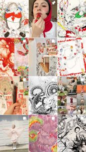 私の仕事において非常に重要な点は、書くことが大好きだということです。詩を書くことが大好きです。以前は詩と絵画の間に何の繋がりも無いと思っていましたが、実は繋がりがあることに気づきました。根底では、それらは創造的で魔法のような相互作用を持つ、同じものなのです。書くことは文字で描くことであり、想像し、言葉を通してイメージを綴ることです。書くことは一種の視覚的な触覚なのです。