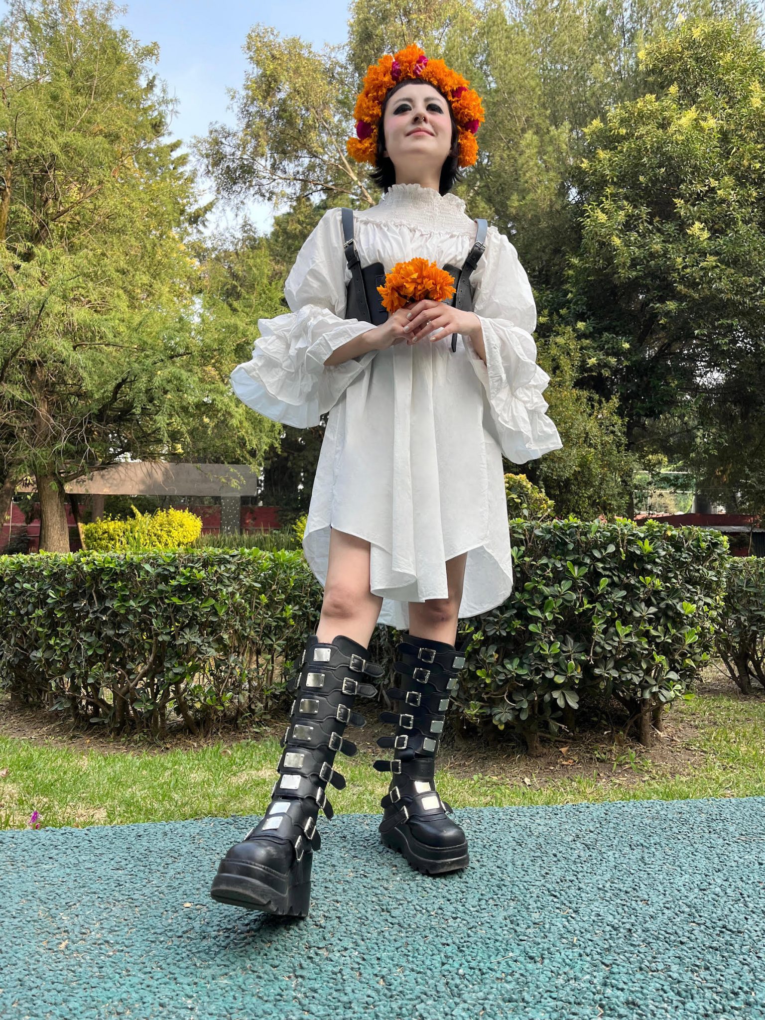 今年は死をイメージしたファッションコーディネートを作りました。 いつものファッションに花かんむりをプラスするとトラッドな印象に仕上がります。 近所を歩いていたら、たくさんの人から褒められました! 楽しかった。