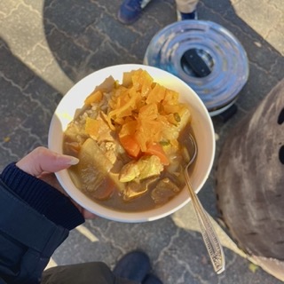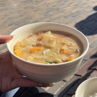 この日のメニューは、ねぎや大根がごろごろ入った和風カレー
