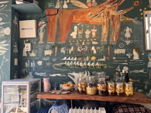 壁が手書きのイラストで埋め尽くされていてかわいい!