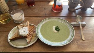 頼んだのは、ブロッコリーとセロリのポタージュ, ハムチーズトースト