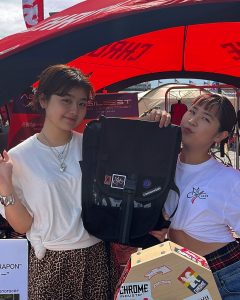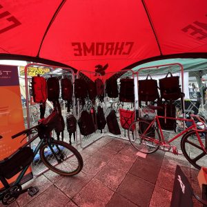 ただ、メッセンジャーの選手として参加したのではありません!父がCHROME JAPANに勤めていて、私はCHROME JAPANのブースのスタッフとしてお友達と一緒に行ってきました♡ cannondaleとPanaracerとのトリプルコラボブースです。