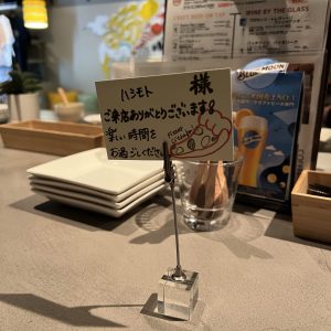 席に着いたらこのメッセージが…!ちょっとしたおもてなしがハッピーな気持ちになります。