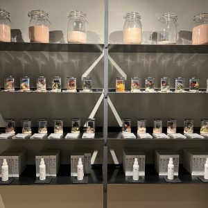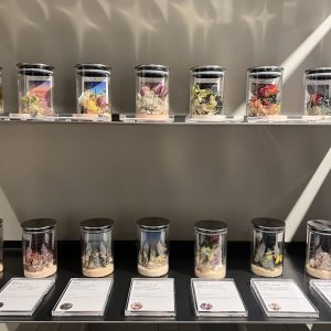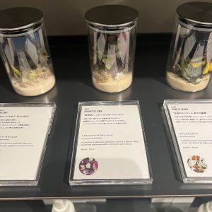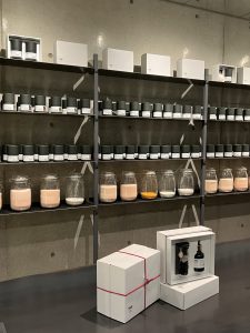 一つ一つを覗くとその香りを連想させるポプリと風景の写真が瓶に詰められています