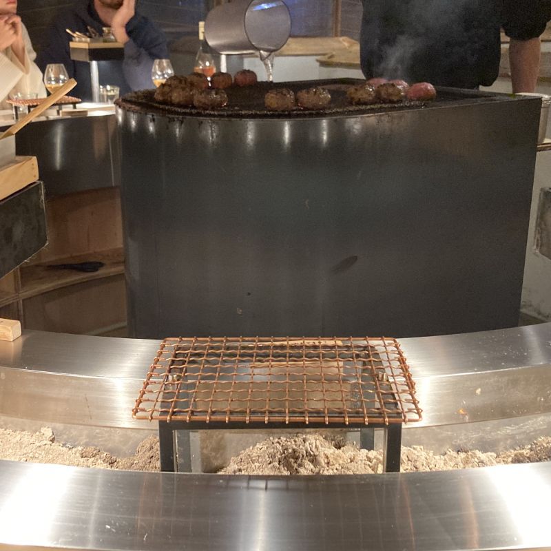 炭火の上で温められたジューシーなお肉を