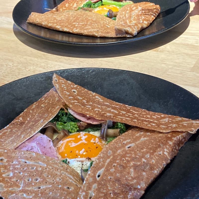 交わってその下のそば粉を使用したガレット
