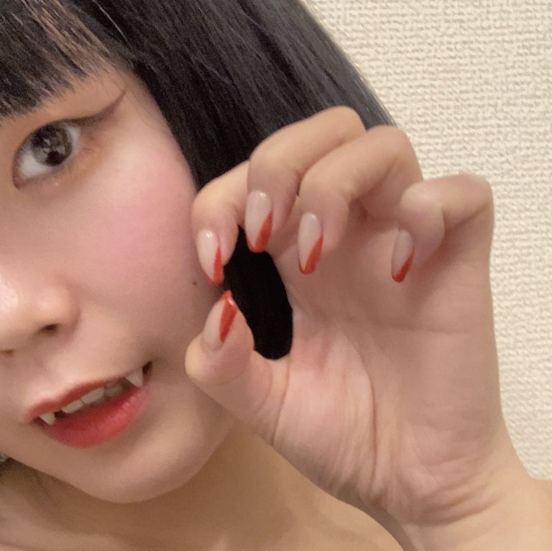 ヘアーは真っ黒、ネイルとリップは真っ赤で