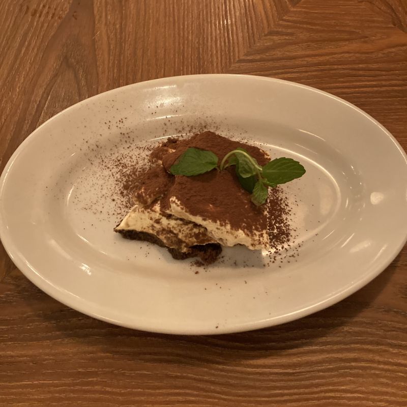 食後デザートのティラミスも