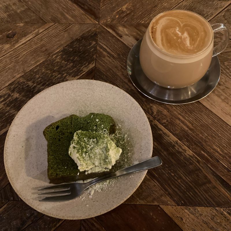 私は抹茶のパウンドケーキとHot latte