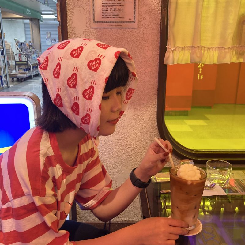ぐわしTシャツとHUMANMADE のバンダナ、LEEのデニムスカートナイキのリュックで