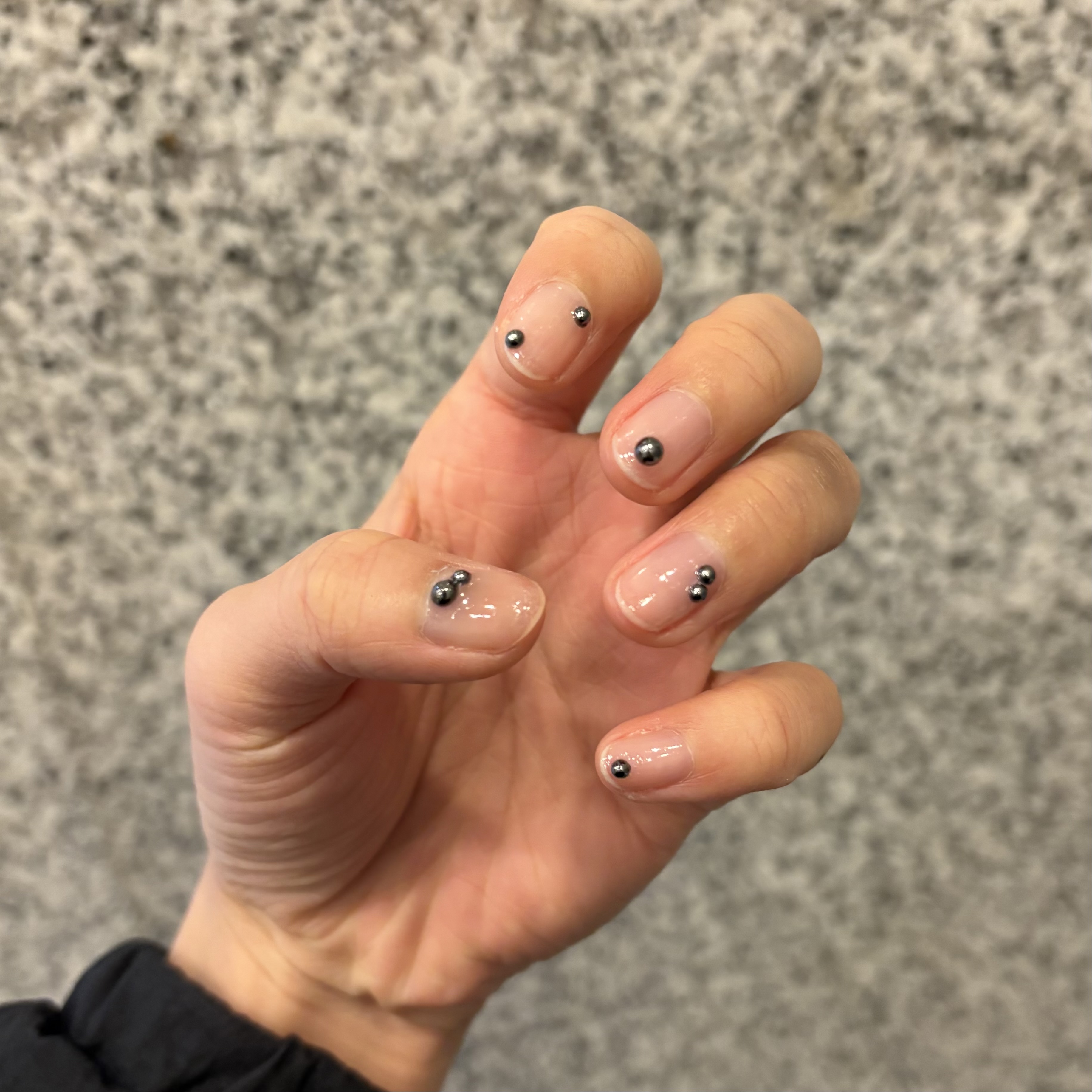 3.ストーンを置きたい場所にジェルネイルクリアを筆で置く→その上にストーンを置く