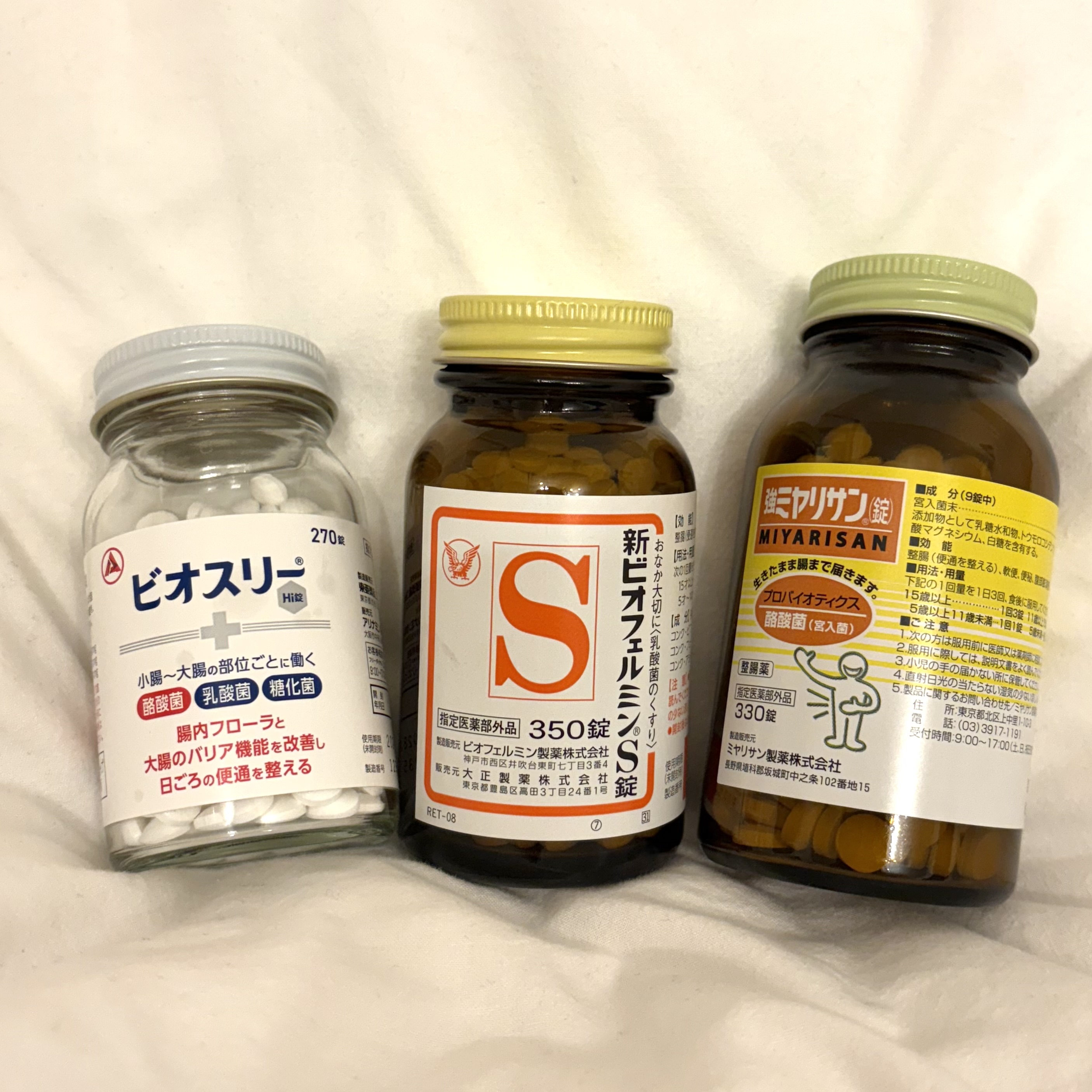 新ビオフェルミンS錠、強ミヤリサン錠、ビオスリーHi錠の3種類を飲み始めました!