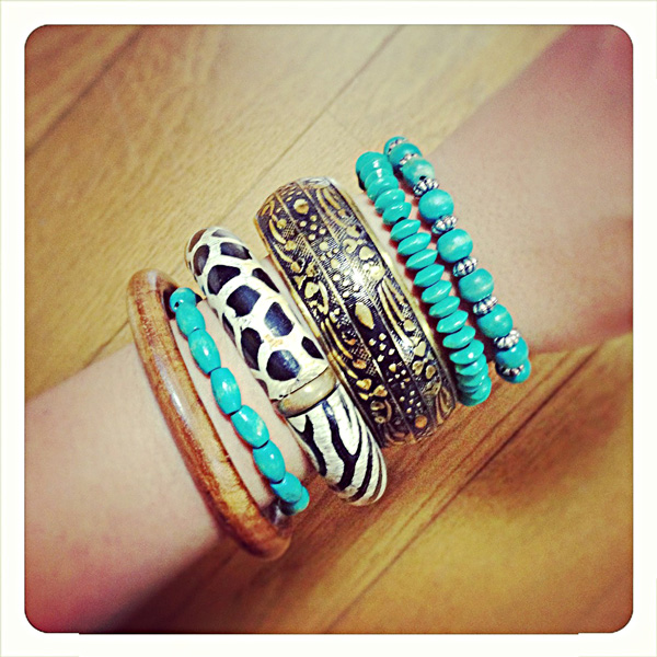 未来乃/オーストラリアでゲットしたブレスレットはゴールド×ターコイズブルーの夏っぽい色合いがお気に入り♪