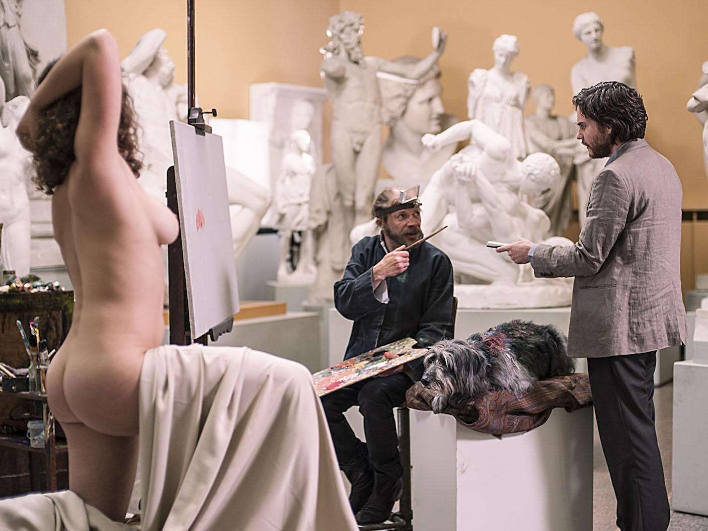 そんな85歳になるカミンスキー(イェスパー・クリステンセン)の自伝を書いて一儲けしようと企むのが、31歳の“自称”経験豊富な美術評論家ゼバスティアン・ツェルナー(ダニエル・ブリュール)だ。はるばるスイスの山奥にやってきたゼバスティアンは、半ば強引に取材にこぎ着けるが、何かと口うるさい彼の娘ミリアム(アミラ・カサール)が邪魔で仕方ない。彼女の不在時を狙い、ゼバスティアンはカミンスキーを外へ連れ出すことに成功する。