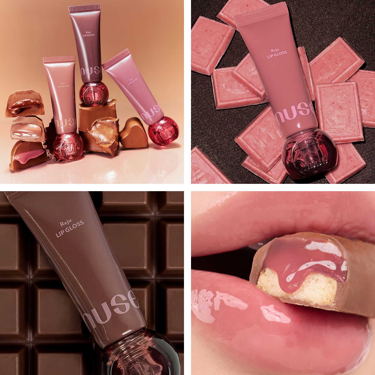 クリエイティヴのかわいさから人気が高くなっているnuse(ヌズ)のReju LIP GLOSS。甘くておいしそうなシロップのようなグロスで、PDRNも配合の優秀な1本。チョコグロスは3色展開で、水分の入った粒々をなじませるだけでケア効果も!