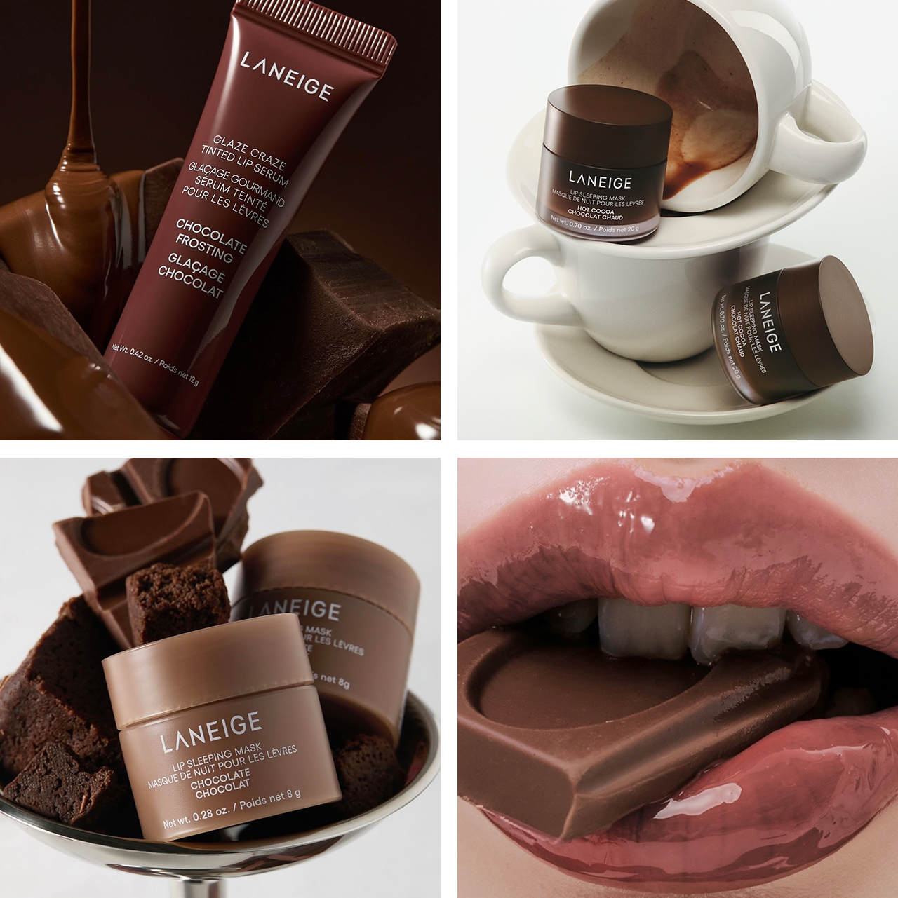 スウィーツがテーマになったコスメを展開すると言えば、やっぱりLANEIGE(ラネズ)は外せない! LIP SLEEPING MASKとGLAZED CRAZE TINTED LIP SERUMのココアとチョコは、プレゼントにも喜ばれる使い勝手の良さと甘い香りがたまらない♡