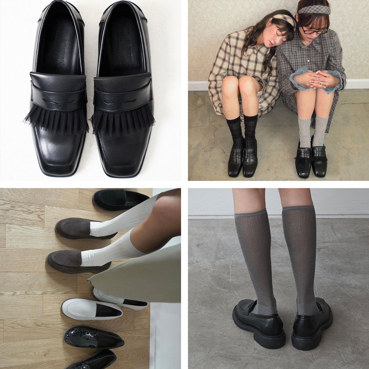 定番で人気なローファーは、今年はちょっと尖ってたり、丸かったり、足袋風だったり一癖あるアイテムが人気! レースが取り外せる一足はいろいろな使い道もあって特におすすめ♡