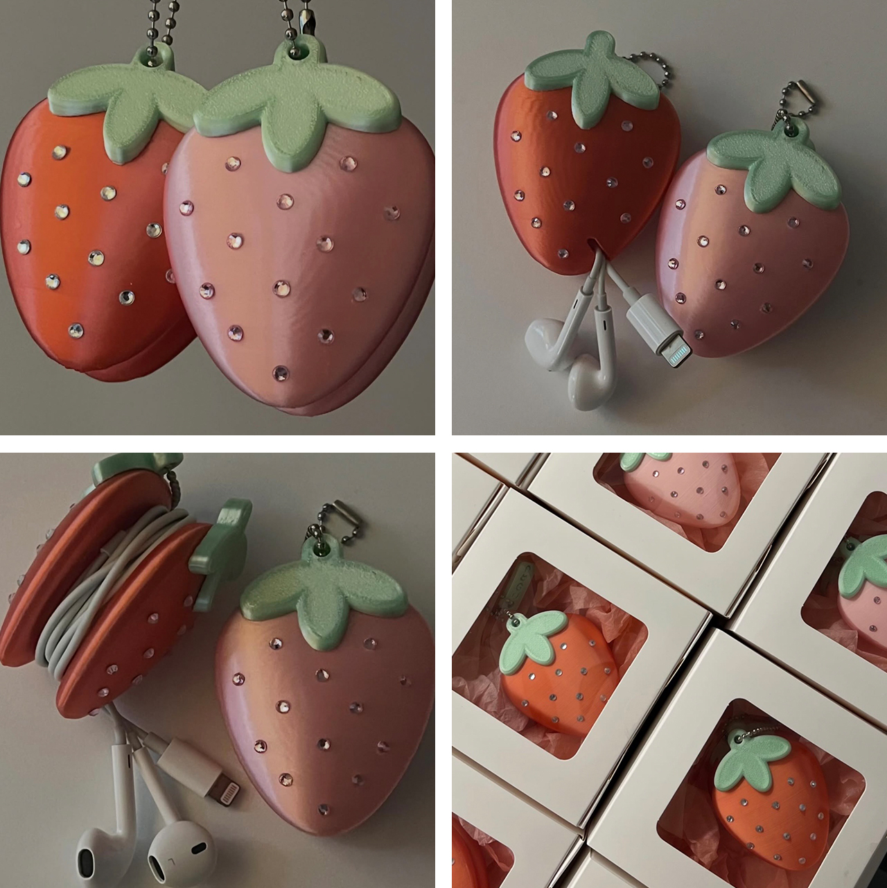 どこか懐かしさを感じる手作り雑貨を販売している코노나츠(コノナツ)。そのままでもかわいい、いちごのキーリング。イヤフォンを巻きつけるとさらに愛おしさ増幅! これは絶対ゲットしたい!