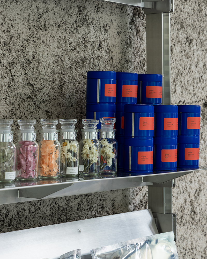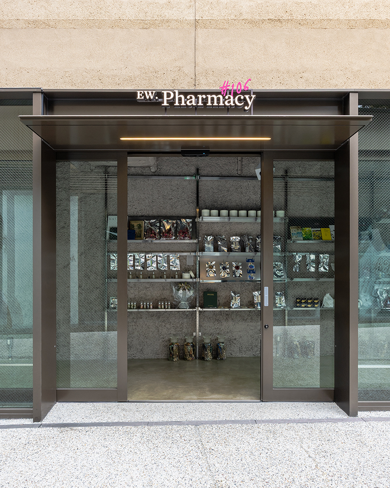 EW.Pharmacyは調剤薬局の“調合”をコンセプトに、世界にひとつだけのオーダーメイドアレンジメントを作ってもらえるショップ。『EW.Pharmacy #106』ではさらに、rocky’s matchaによる抹茶やほうじ茶などのドリンクをテイクアウトで楽しむことができる。