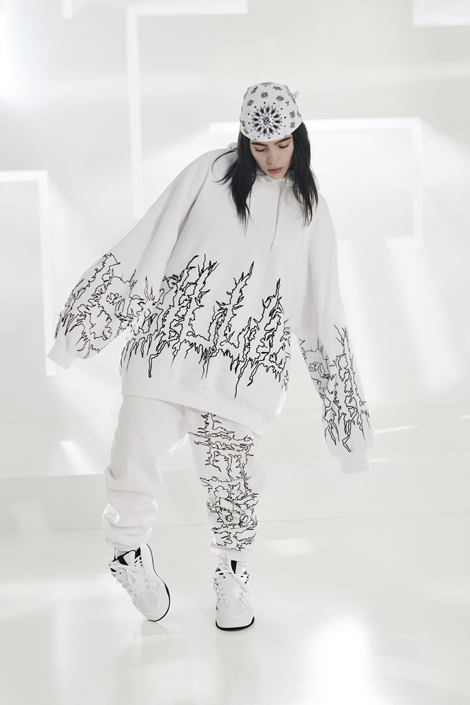 ブラック&ホワイトと鮮やかなアシッドカラーを効かせ、大胆なオーバーサイズのボリューム感やユニセックスなスタイルが彼女らしい