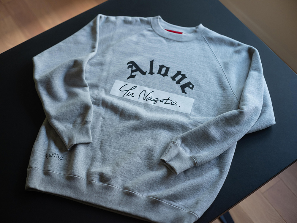 日本のファッションブランドALONE(アローン)×イラストレーター長場雄×複合型ショップBIOTOPコラボのスウェットとTシャツがリリース!