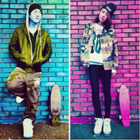 girl:Saki boy:Kei/①11ヶ月 ②美容師の彼にモデルを頼まれた ③初めての海外旅行、韓国☆ ④スケボーでクルージング
