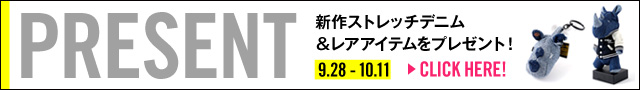 ホワイトステッチとブラックデニムのコントラストがコーディネイトのアクセントに。