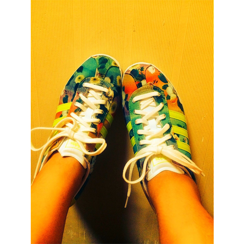 まゆ/adidasOriginalsのスニーカーはサイドから見える花柄がお気に入り。ネオンカラーのソックスとも相性ぴったり♪