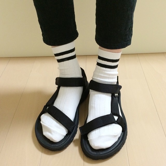 mitsu/この夏に履きたいTevaのサンダル。 白のラインソックスを合わせて大人っぽいく!