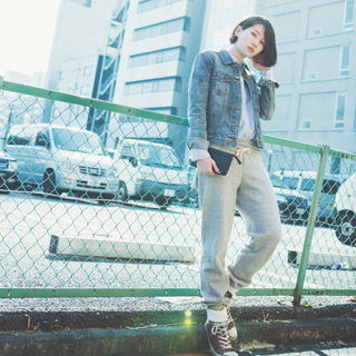 More Casual, More Easy カジュアルなルックがお好きなKikunoはGapのシャツとデニムジャケットをチョイス。スウェットとスニーカーでラフにスタイリング。 シャツ¥5,900、ジャケット¥7,900、クラッチバッグ¥4,900(全てGap)、スウェットパンツ、ソックス、スニーカー本人私物 |