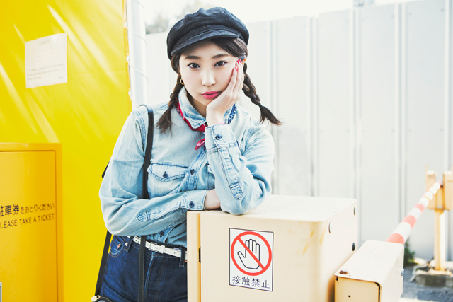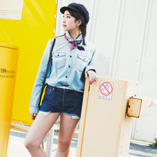 Pieces of Preppy デニムonデニムで作るカウガール風スタイル。ワークキャップやバンダナなど、小物使いに注目。プレッピーな三つ編みでヘアスタイルも抜かりなく。 シャツ¥6,900、デニムパンツ¥4,900※4月上旬展開予定、ベルト¥3,900(全てGap)、キャップ、ショルダーバッグ、アクセサリー本人私物 |