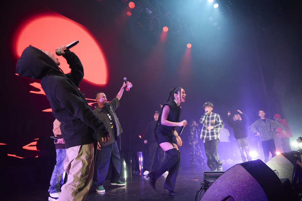 ライブ中、Awichが客席からファンを選び難解なフロウで知られる楽曲に挑戦する“Open It Up”チャレンジで白羽の矢が立ったのは14歳のHIP HOPボーイ! 大勢の観客が見守る中ステージ上で完璧なラップを披露した彼も、大いに会場を沸かせた。