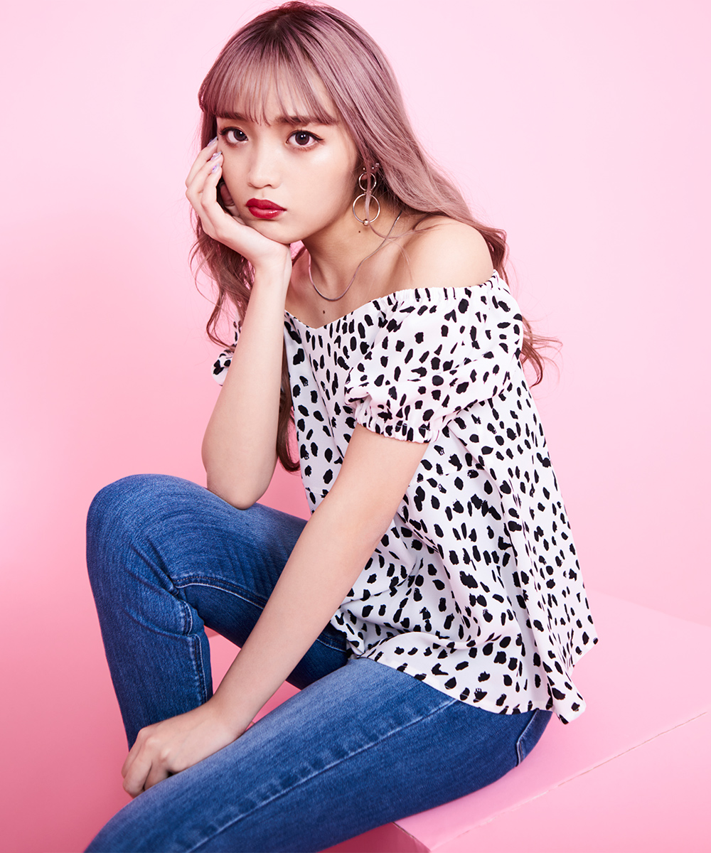オフショルダーとしても着用できる2way仕様。アニマル柄のようなエッジの効いたトップスは、コーディネイトの主役として取り入れて♡ |