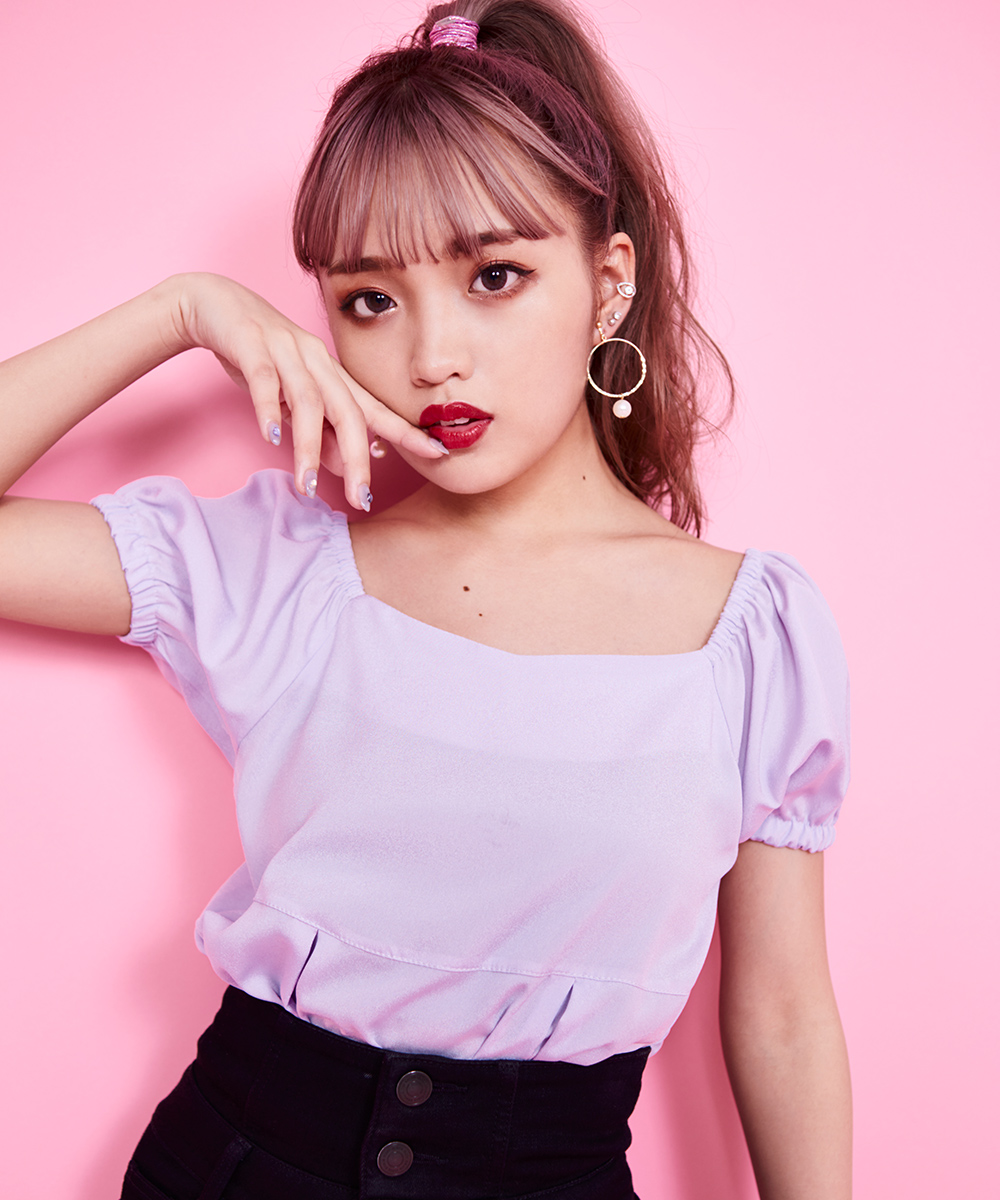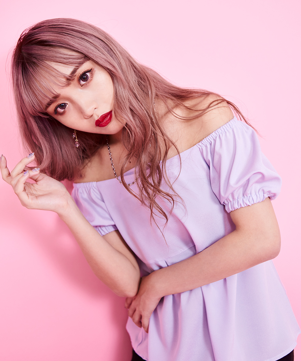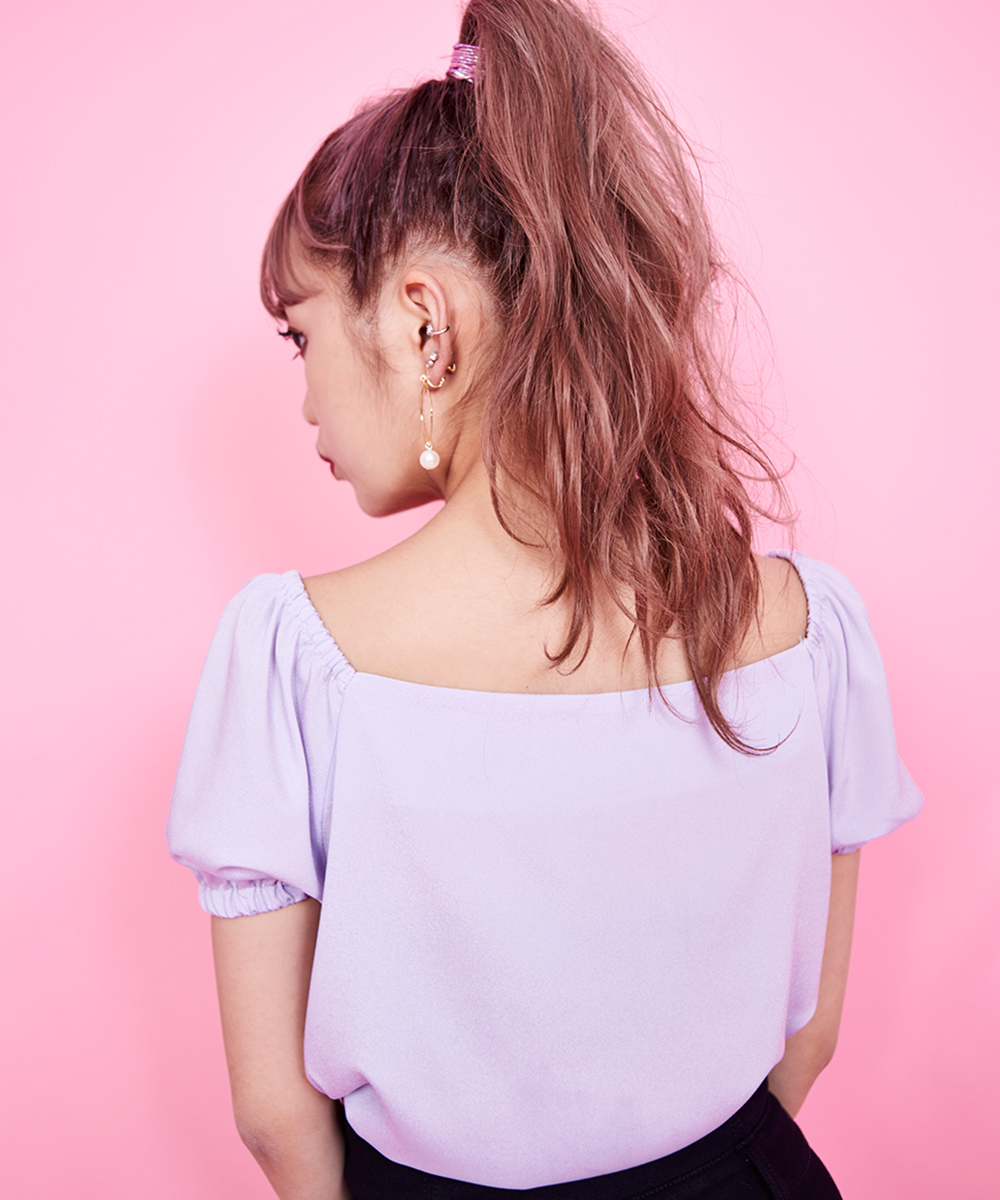 オフショルダーとしても着用できる2way仕様。ガーリーな淡いパープル。スカートにもぴったりな丈感。 |