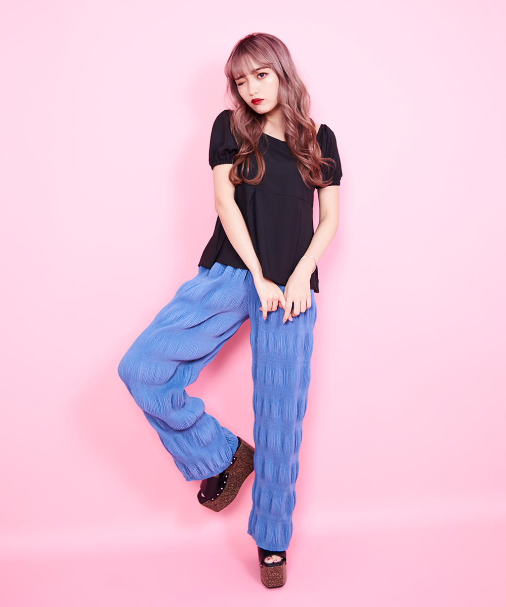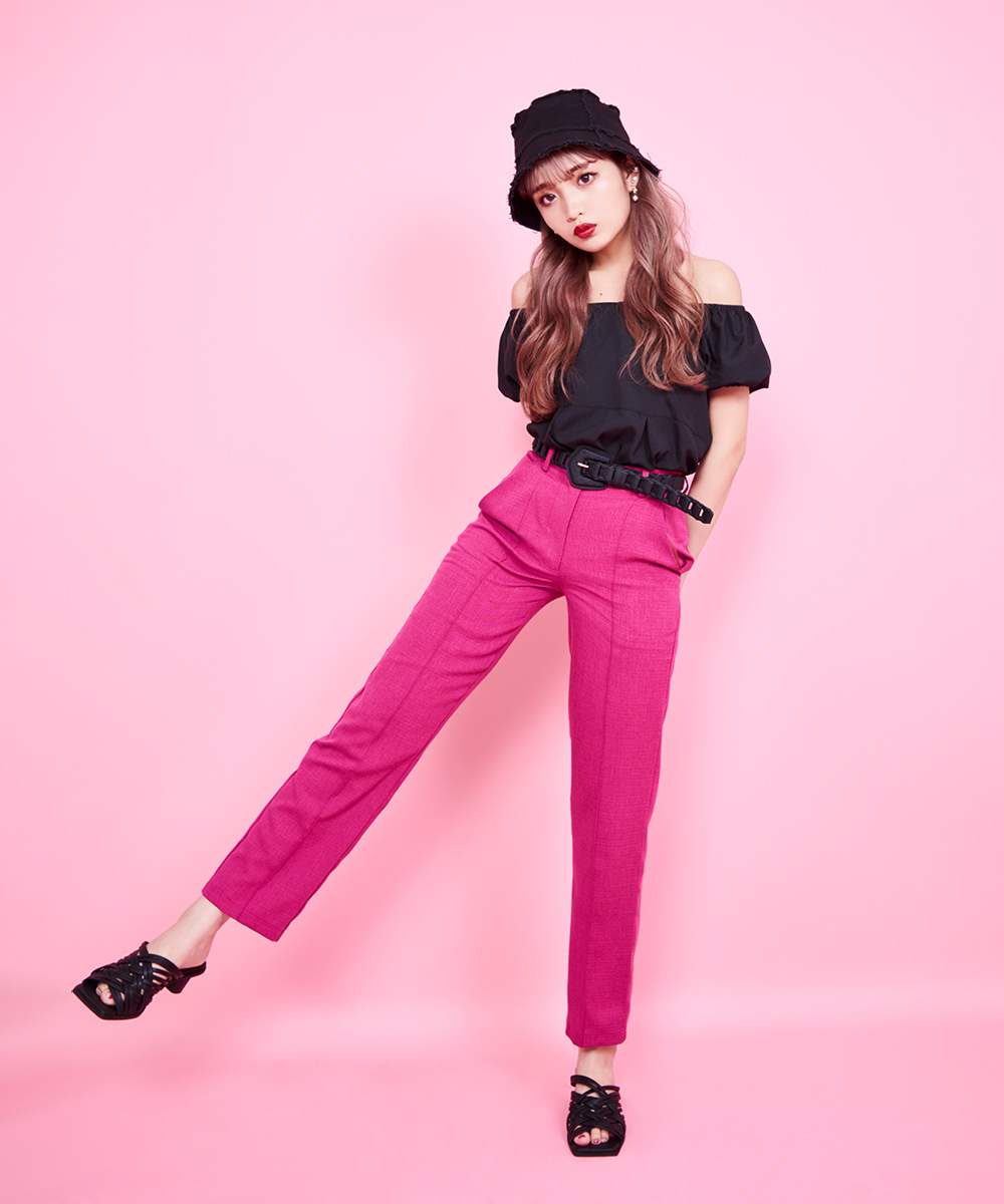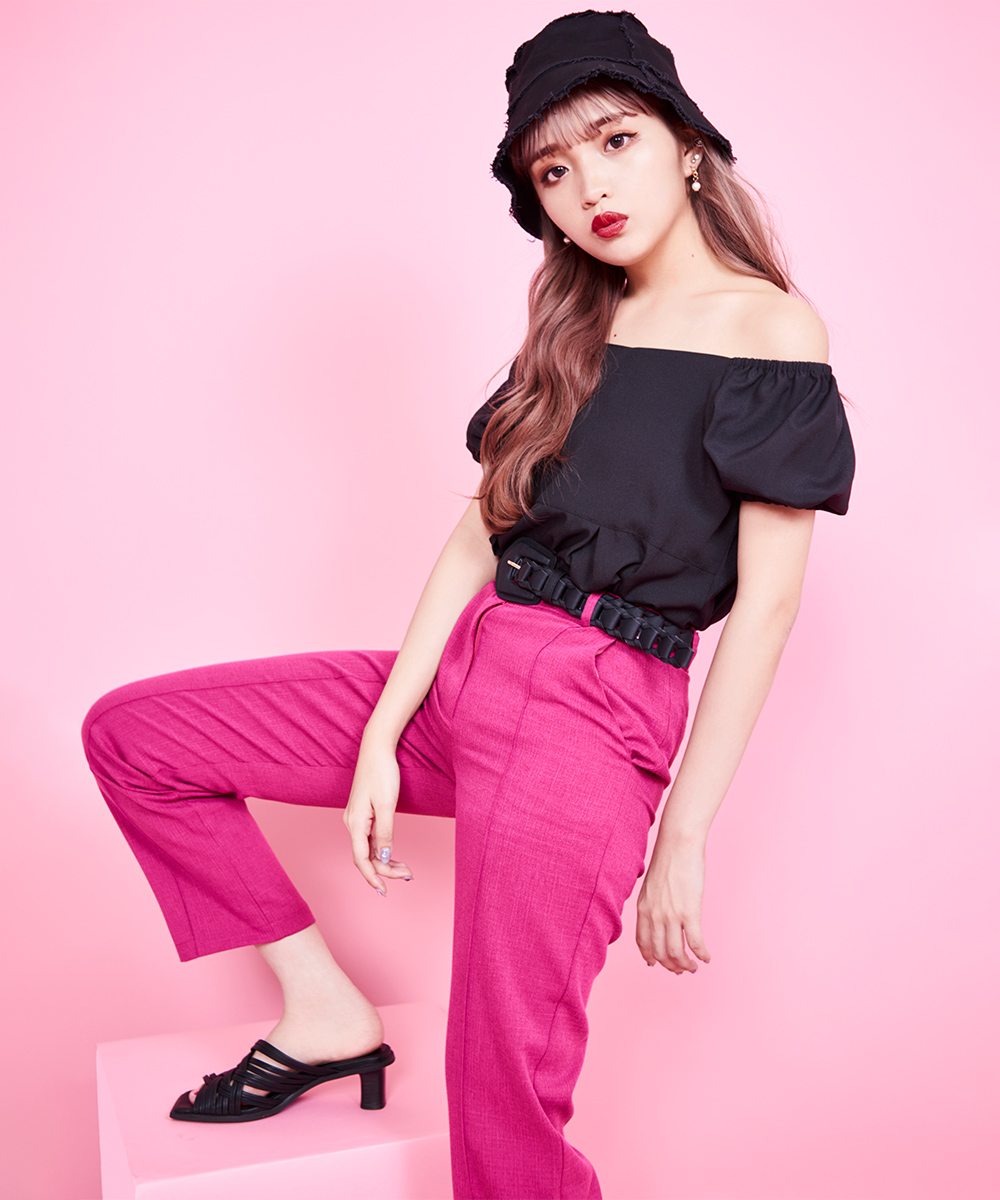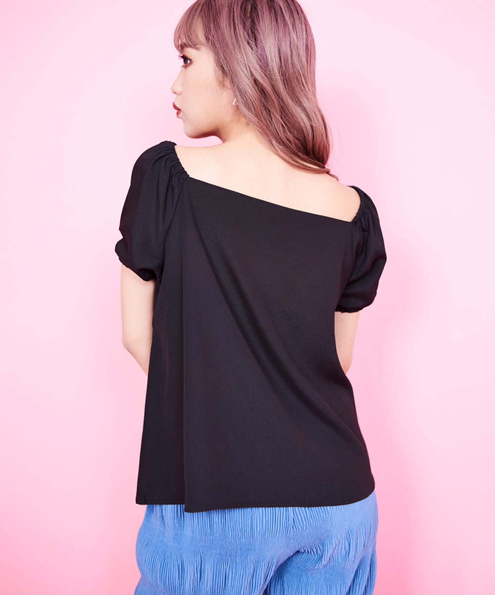オフショルダーとしても着用できる2way仕様。大人っぽく着こなせるブラック。カラーボトムと合わせて個性を発揮! |
