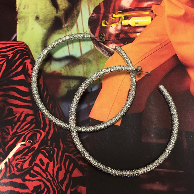 「fantairakでゲットしたフープピアス。定番のアイテムだけど、キラキラシルバーをチョイスすれば、カジュアルな中にも上品な印象に。シンプルなスタイルにエッジを効かせてくれるマストアイテム!」 |