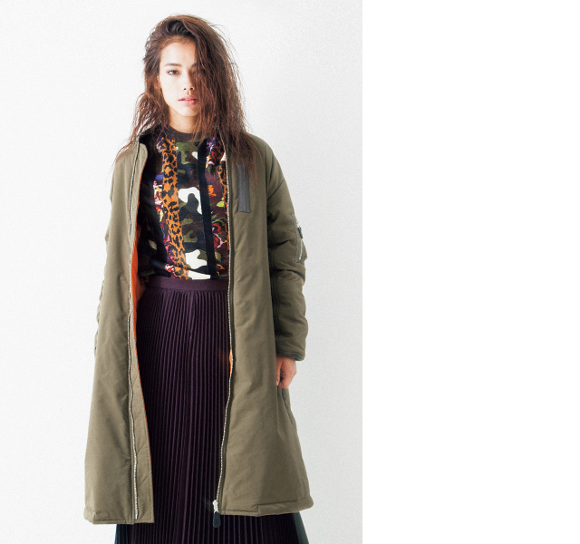MA-1¥70,000、トップス¥33,000、スカート¥43,000(全てG.V.G.V./ケイスリー オフィス)