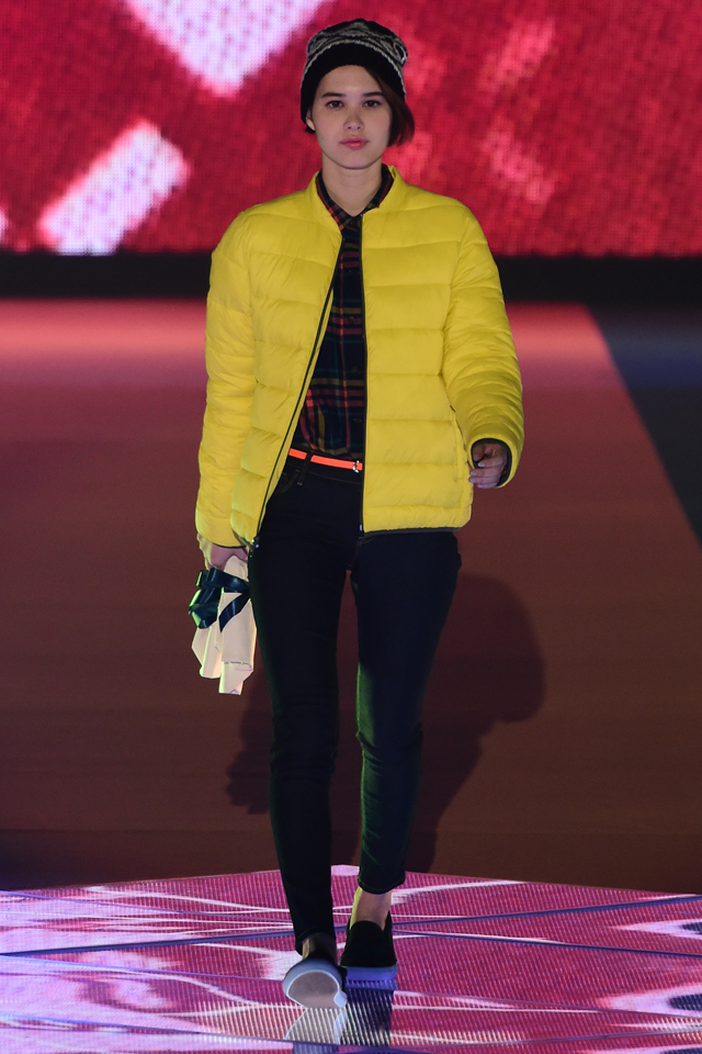 今回のNYLON JAPANステージは、OLD NAVYとのコラボレーション! トップバッターは華やかな赤いワンピースをさらりと着こなす森星がとびきりの笑顔で登場。そしてAMO、野崎智子、佐原モニカ、真間玲奈、南明奈、東京女子流の新井ひとみ、麻宮彩希、金城茉奈、真野恵里菜、おのののかと続き、ラストは石田ニコルが冬にぴったりのホワイトニットガウンで登場。カラフルに彩られたファッションで会場も大盛り上がり。